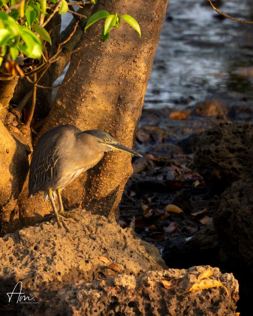 Another lucky moment was spotting a Pond Heron. This bird is a master of stillness. It stands so motionless that it blends perfectly with rocks and surroundings. It’s also incredibly easy to miss if you’re not paying attention. Catching sight of it felt like a small win.