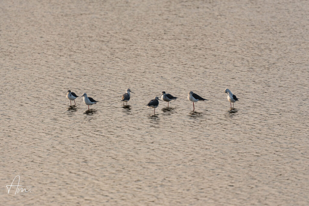 Towards the end, we spotted a group of Black-winged Stilts, their long legs and sharp contrast standing out beautifully against the wetland backdrop.